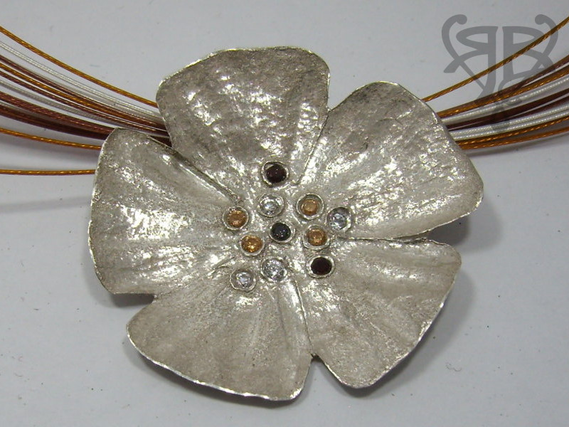 Durch Brennen verfestigt sich die Masse zu solidem, praktisch reinem Silber, wobei auch feinste Strukturen erhalten bleiben. Die Stücke können, falls gewünscht, mit konventionellen Goldschmiedetechniken verfeinert, oder mit ausgewählten Edelsteinen bestückt werden. Der/dem kreativen Schmuckliebhaber/in eröffnen sich völlig neue Möglichkeiten der freien individuellen Gestaltung.