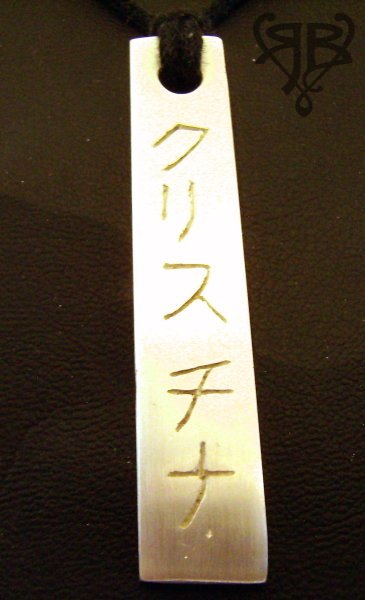 Hier können Sie es in reinem Silber schreiben, auf die Rückseite eines dekorativen, individuell gestalteten Anhängers oder Schlüsselanhängers. Oder auch auf die Vorderseite?