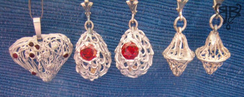 Auch 2-dimensional flach-filigrane Schmuckteile können in dieser Technik angefertigt werden.