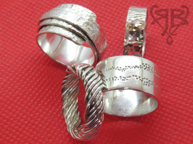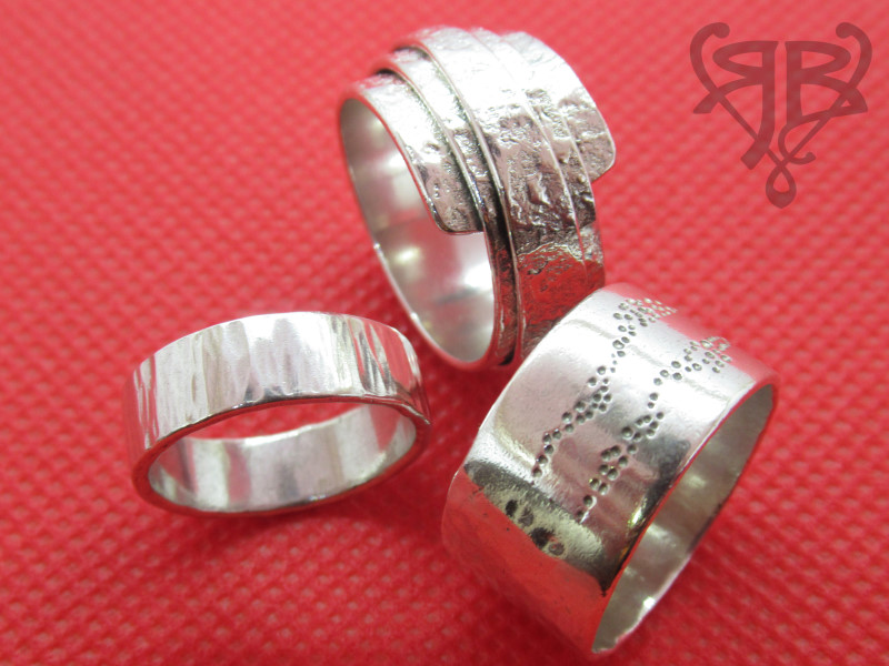 Sie arbeiten handwerklich mit den Werkzeugen und Techniken eines Goldschmiedes. Die Freundschaftsringe können individuell verziert oder mit Hammerschlag-Oberflächenstruktur versehen werden.